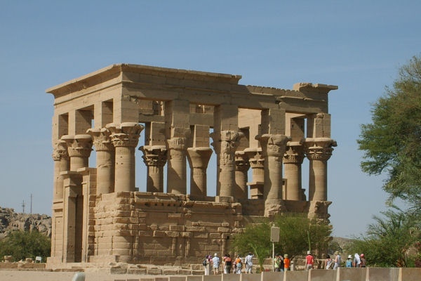 The temple of Philae; erected on the fabulous island of Agilika and dedicated to the goddess Isis. It is characterized by its romantic setting, remarkable architecture and refined frescoes.
