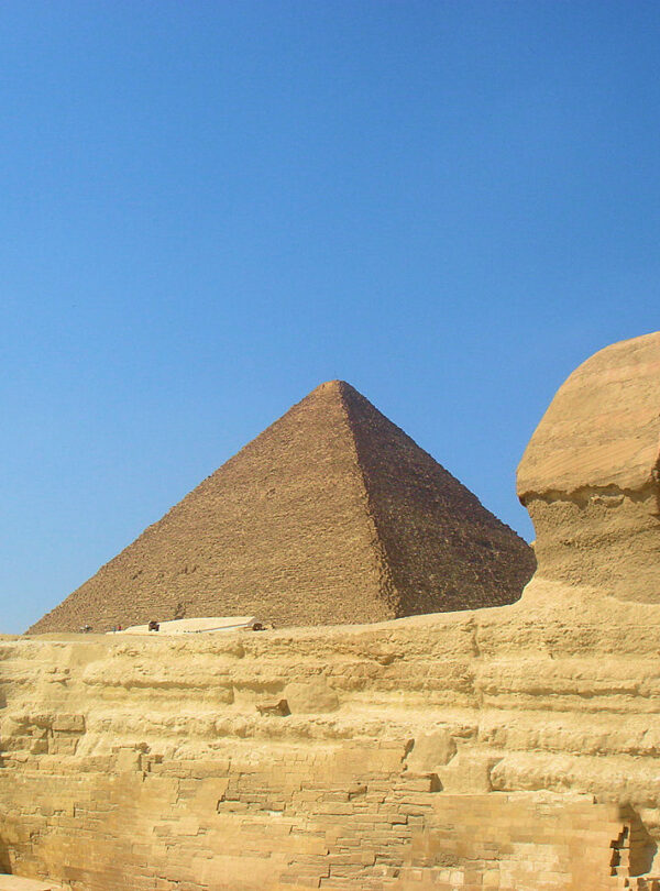 Giza Plateau: the flagship site of the Pharaonic civilization which contains the three famous pyramids "Cheops, Chephren and Mykerinos" as well as the Sphinx, in limestone, enigmatic and gigantic with a human head and a lion's body, raised as the guardian of the necropolis. And the funerary temple of King Khafre built entirely of granite and limestone.